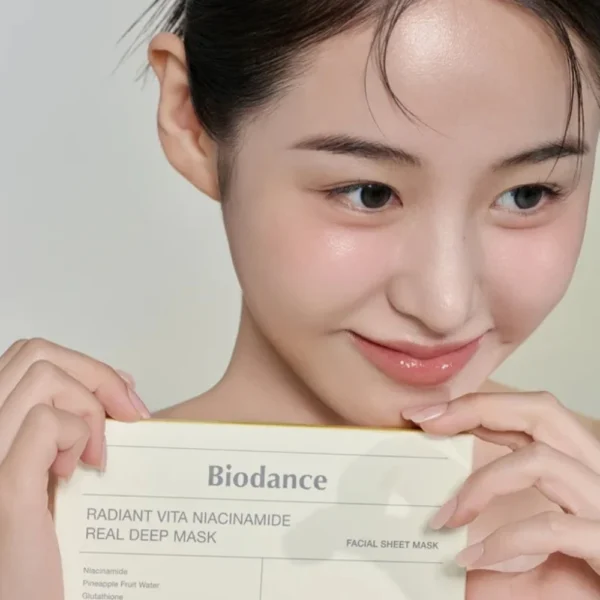 Radiant Vita Niacinamide Real Deep Mask, 34g – Biodance. This niacinamide mask is designed to revitalize dull skin by eliminating tired-looking appearance and reducing skin concerns such as acne scars and dark spots, leaving the face looking fresh and radiant.