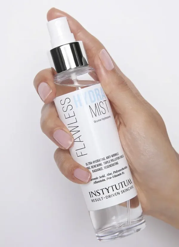 Spray Flawless Hydra Mist onto the face, neck and décolletage and allow to absorb. Apply INSTYTUTUM serum or cream to slightly damp skin.