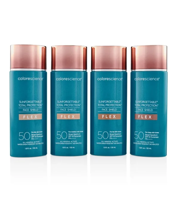 Уникальный солнцезащитный адаптивный крем Sunforgettable® Total Protection™ Face Shield Flex SPF 50 обеспечивает мощную защиту от воздействия негативных факторов окружающей среды и мгновенно выравнивает тон кожи, придавая ей здоровый естественный внешний вид. Крем доступен в трех уникальных оттенках для разных тонов кожи. Благодаря инновационным пигментам в составе, крем адаптирует свой цвет в зависимости от тона кожи, поэтому этот солнцезащитный крем подойдет каждому.